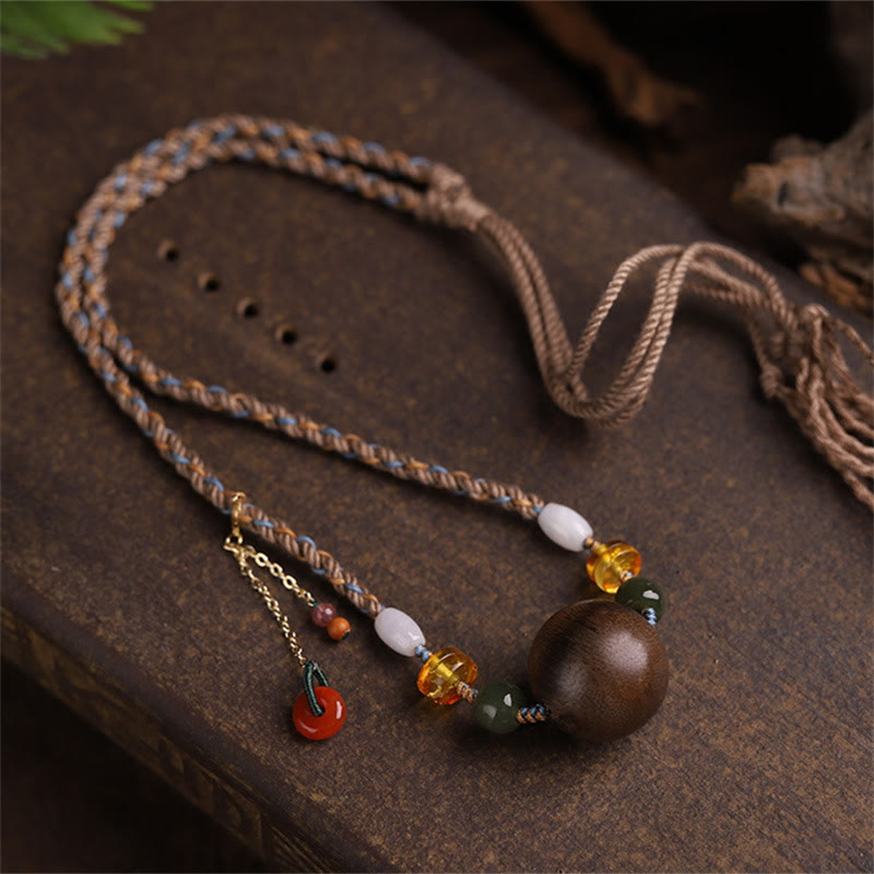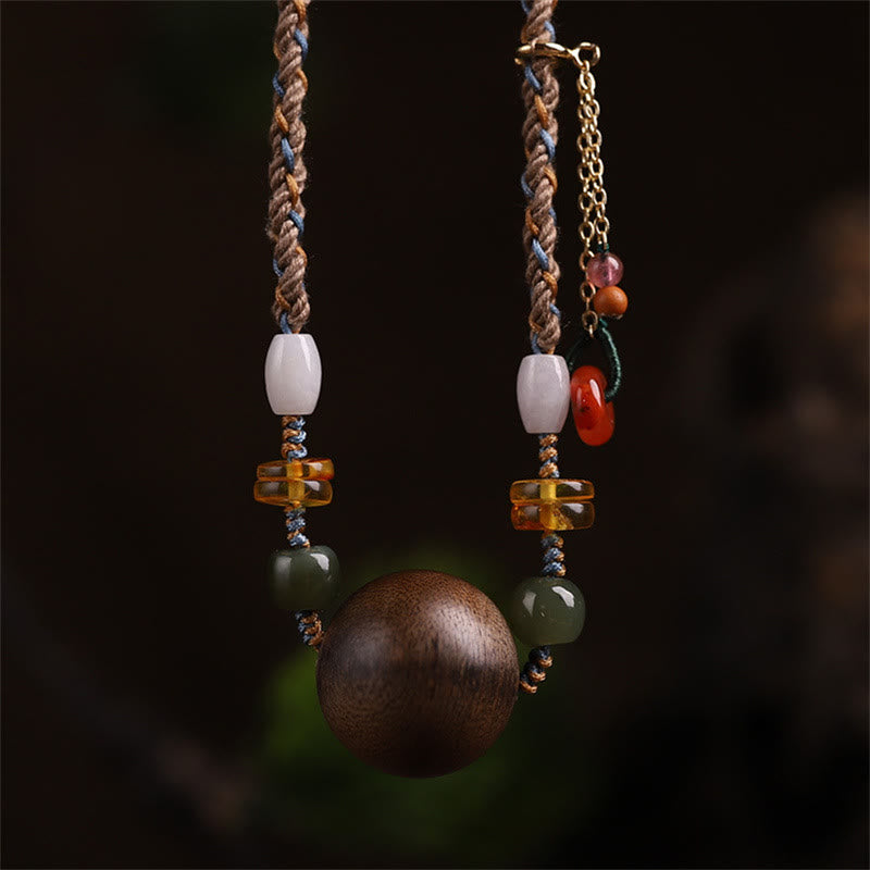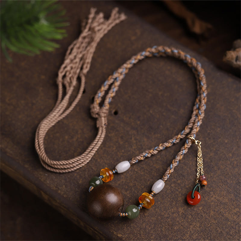 Bai Qinan Agarwood Bead Luck Strength String Necklace Pendant