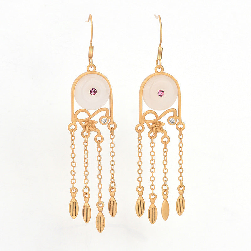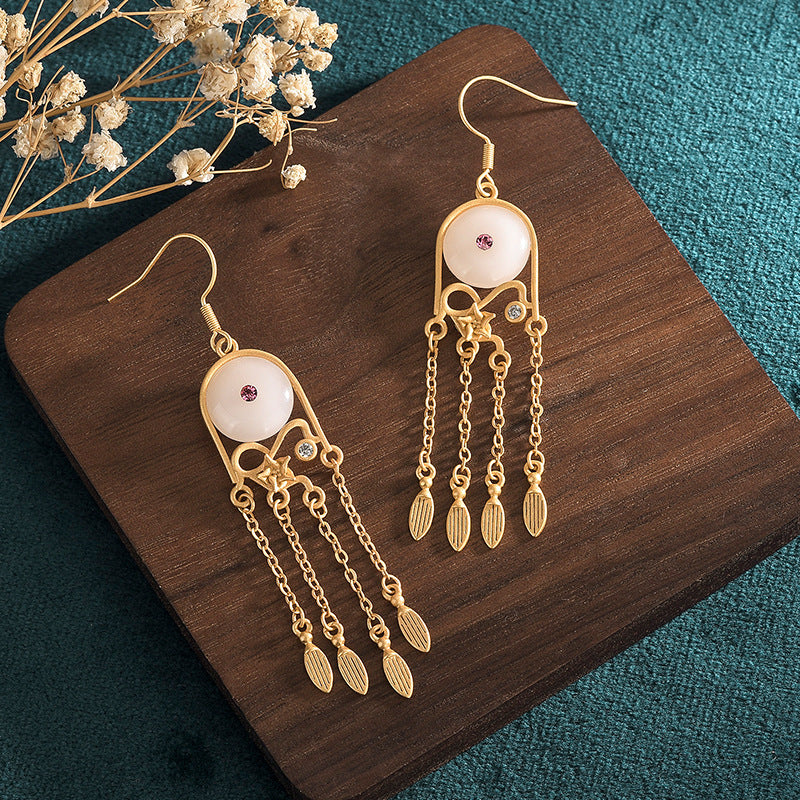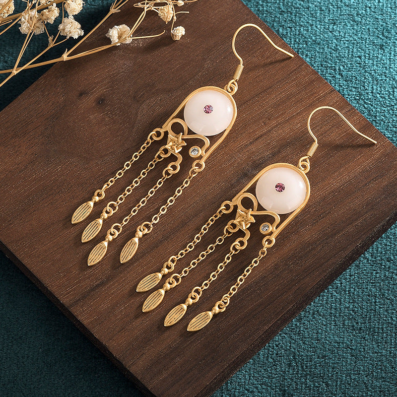 White Jade Ethnic Chinese Style Tassel Drop Dangle Earrings