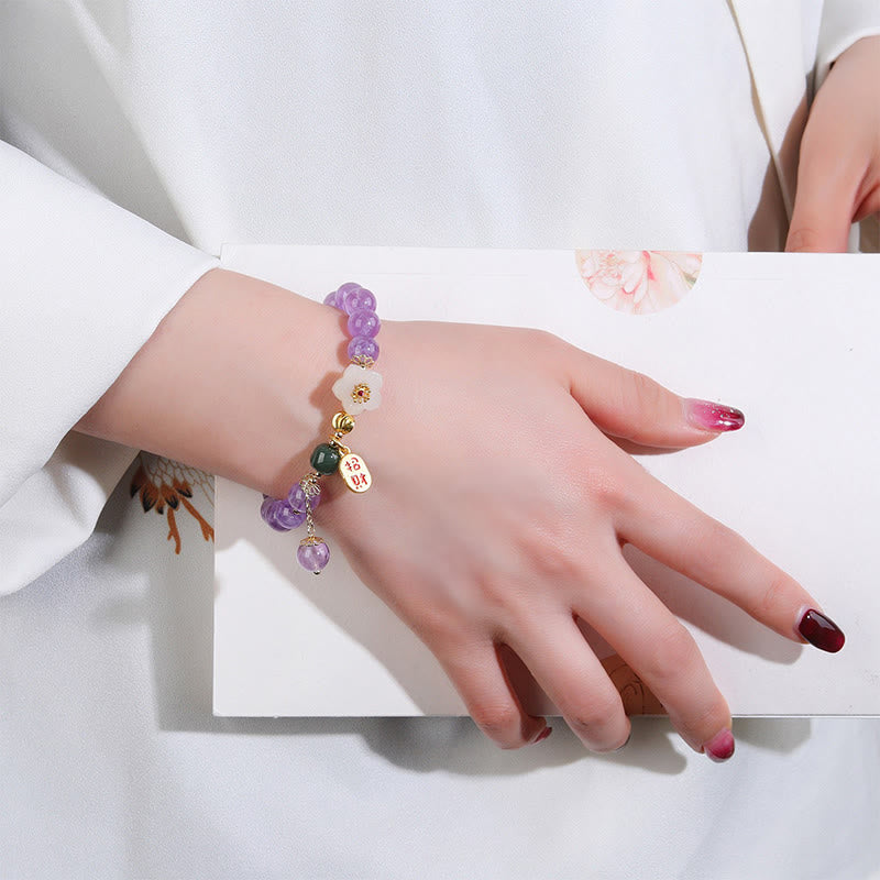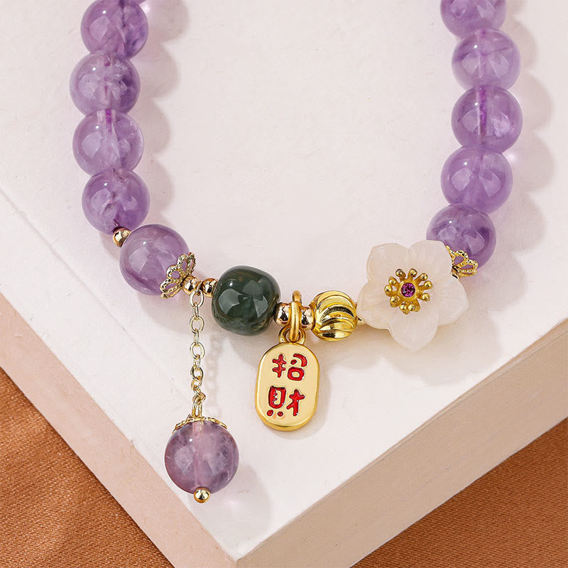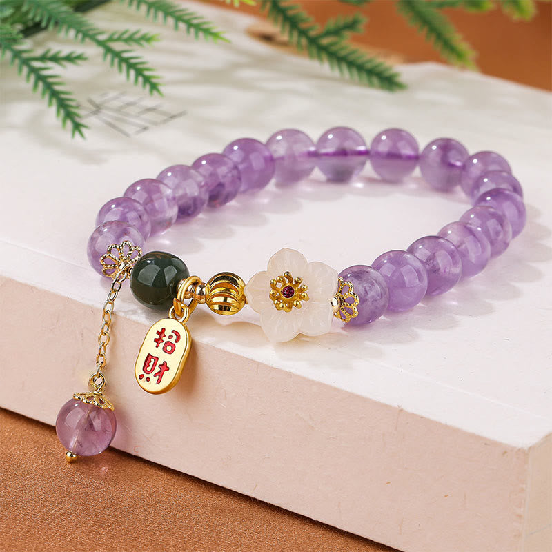 Natural Amethyst Cherry Blossom Healing Fortune Blessing Charm Bracelet
