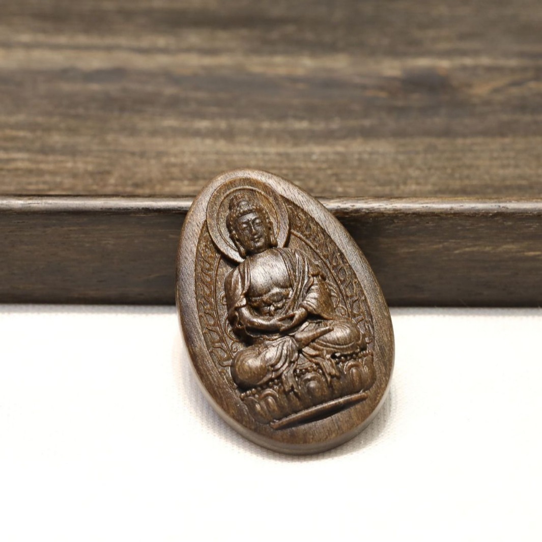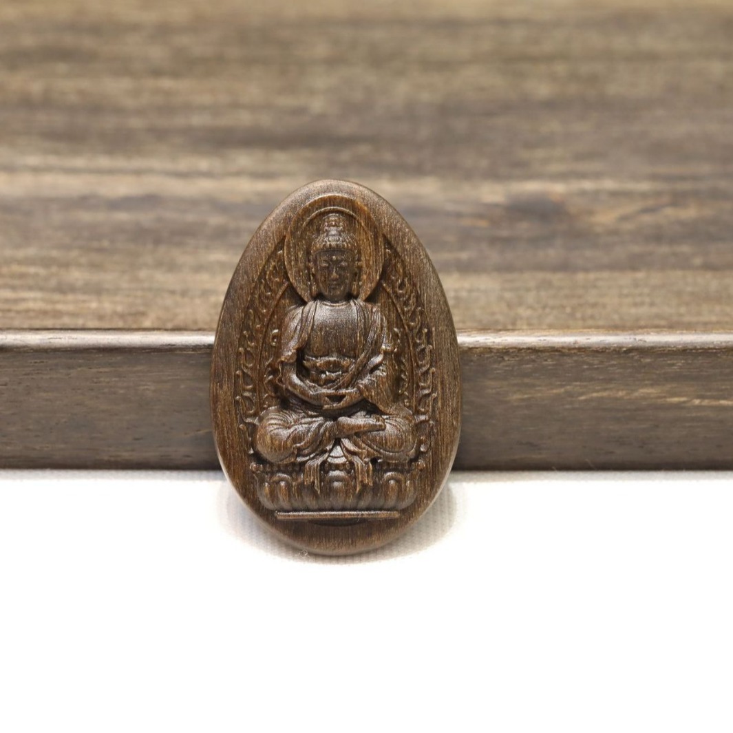 The pendant includes a complementary chain, creating a complete piece that serves both as a spiritual talisman and an elegant piece of jewelry. The natural oils in the agarwood continue to mature and develop their complex fragrance with wear.