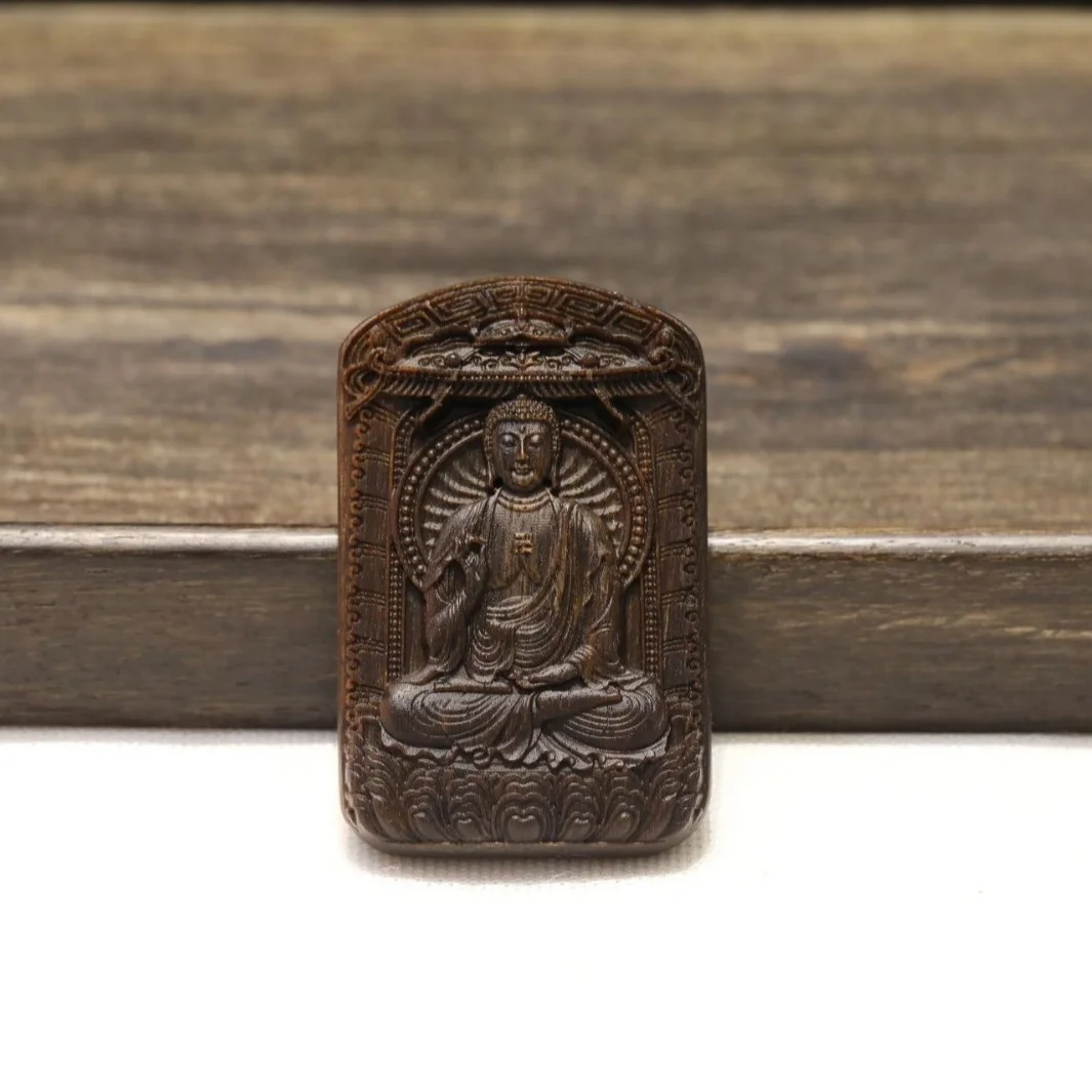 The Brunei Agarwood 58 Buddha Amulet exemplifies the pinnacle of spiritual craftsmanship, featuring precious old-growth sinking-grade agarwood from Brunei's ancient forests. This exquisite pendant showcases a finely carved Buddha image, meticulously created to capture both spiritual essence and artistic beauty.