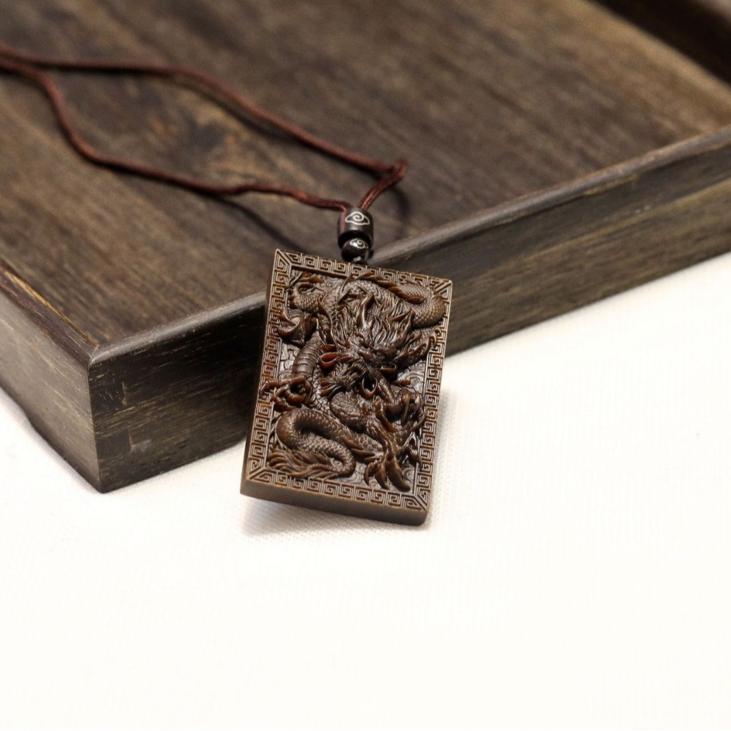 The Fusen Red Clay and Agarwood Dragon Amulet is a masterful fusion of two precious materials, featuring premium sinking-grade agarwood complemented by distinctive Fusen red clay. This exceptional pendant showcases an intricately carved dragon design that embodies power and protection.