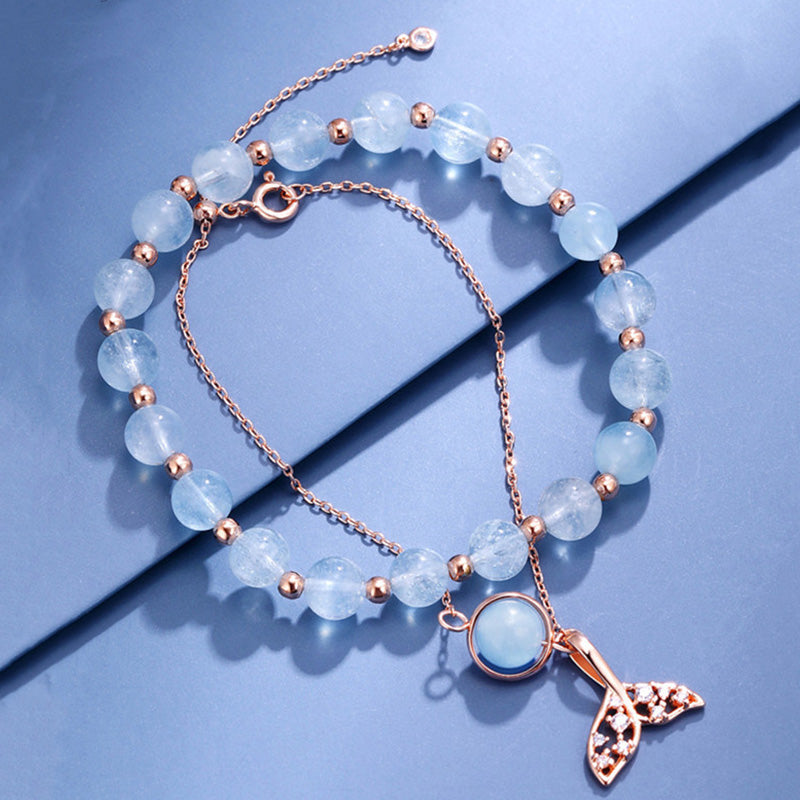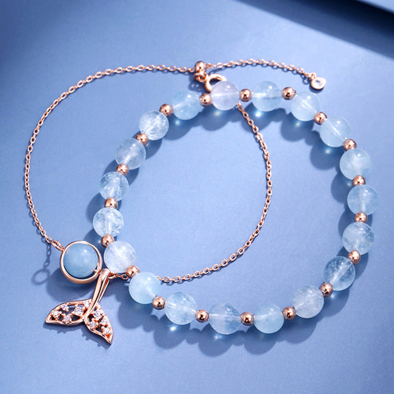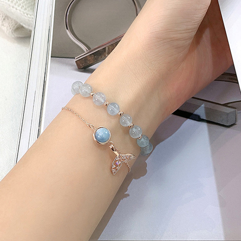 2Pcs Aquamarine Dolphin Tail Pattern Peace Bracelet