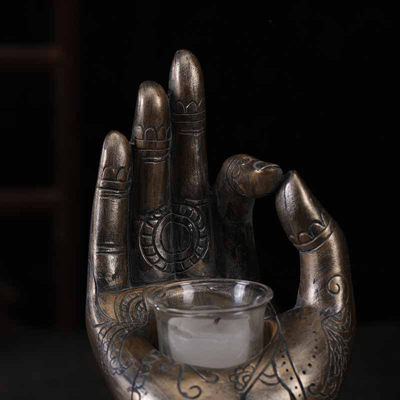 - 【HIGH-QUALITY BUDDHA HAND CANDLE HOLDER】--- It is hand-made with environmentally friendly resin materials, hand-carved for home decoration, non-toxic, no safety hazards, and safer to use.