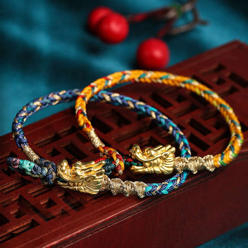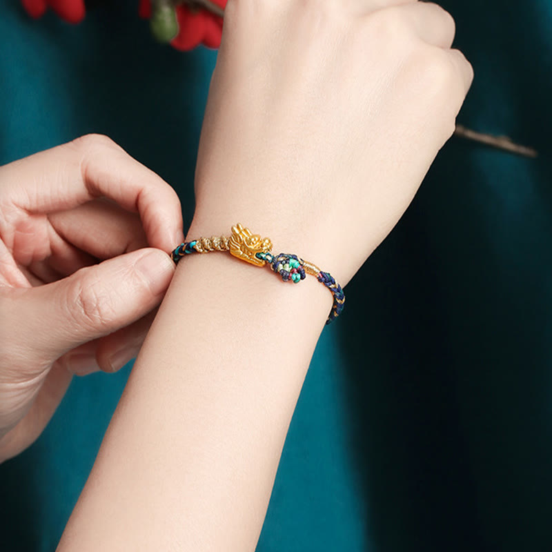 2. Eight Thread Dragon Knot: Adorning the bracelet is an intricately handwoven dragon knot created from eight colorful threads, a symbol of good luck, strength, and resilience. This knotwork reflects the ancient artistry of Chinese culture and the interconnectedness of life's elements.