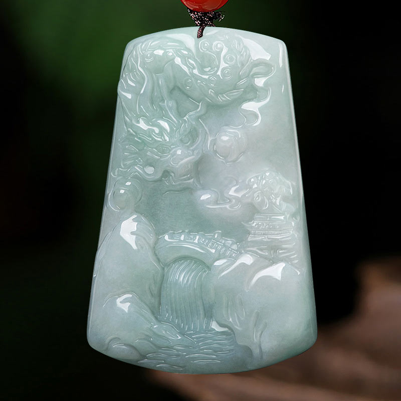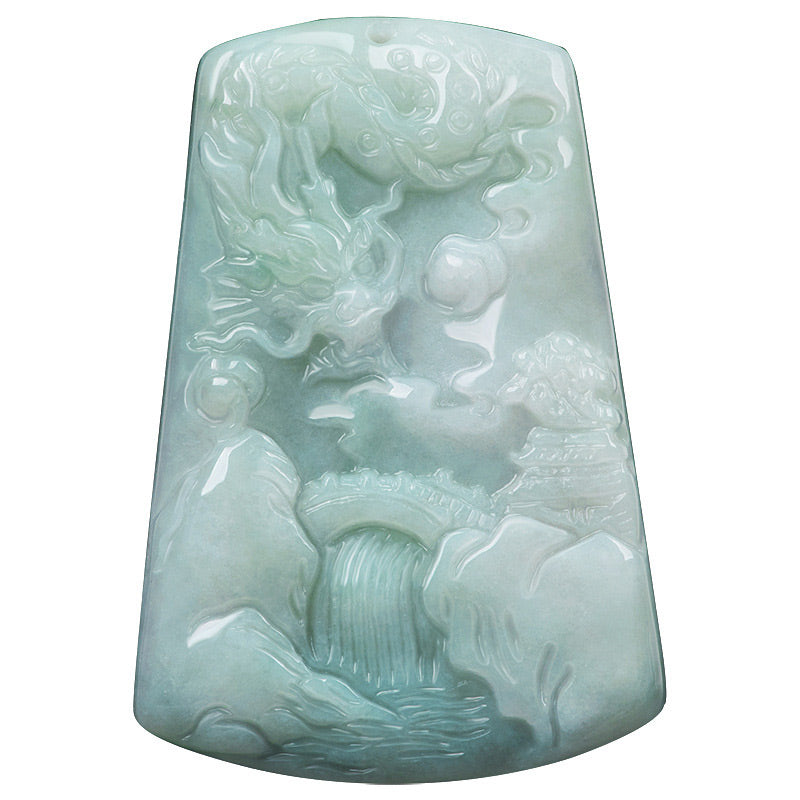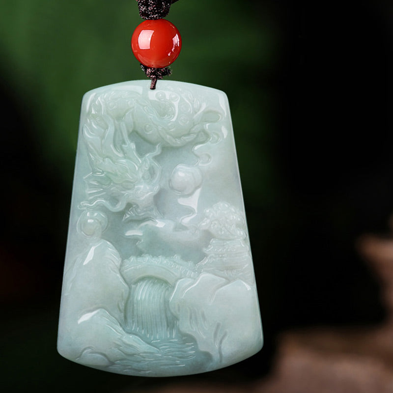 Chinese Zodiac Dragon Jade Mountain River Luck Necklace String Pendant