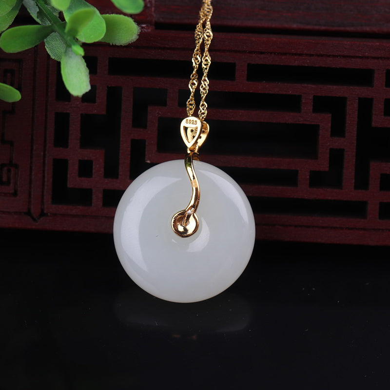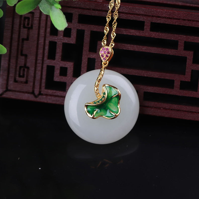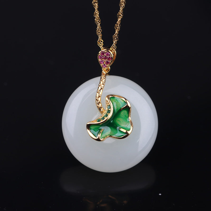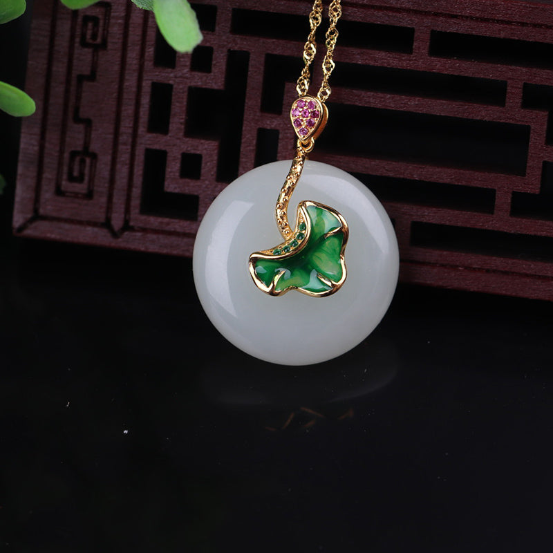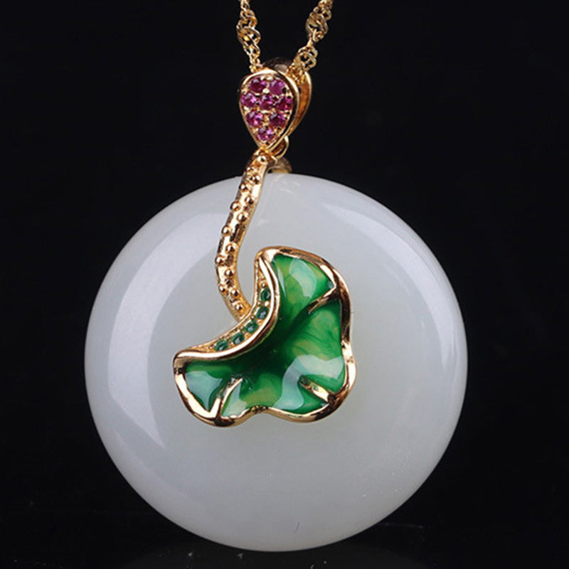 925 Sterling Silver White Jade Lotus Flower Leaf Protection Necklace Pendant