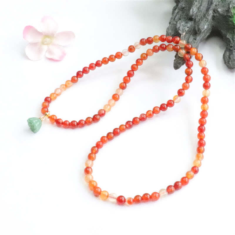 Red agate means festivity and auspiciousness. The color of red agate is bright red, and red is a symbol of good luck and auspiciousness. Agate is a symbol of wealth.