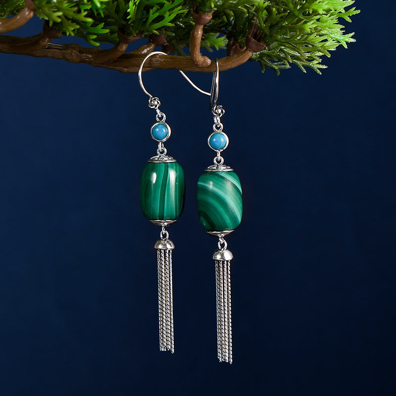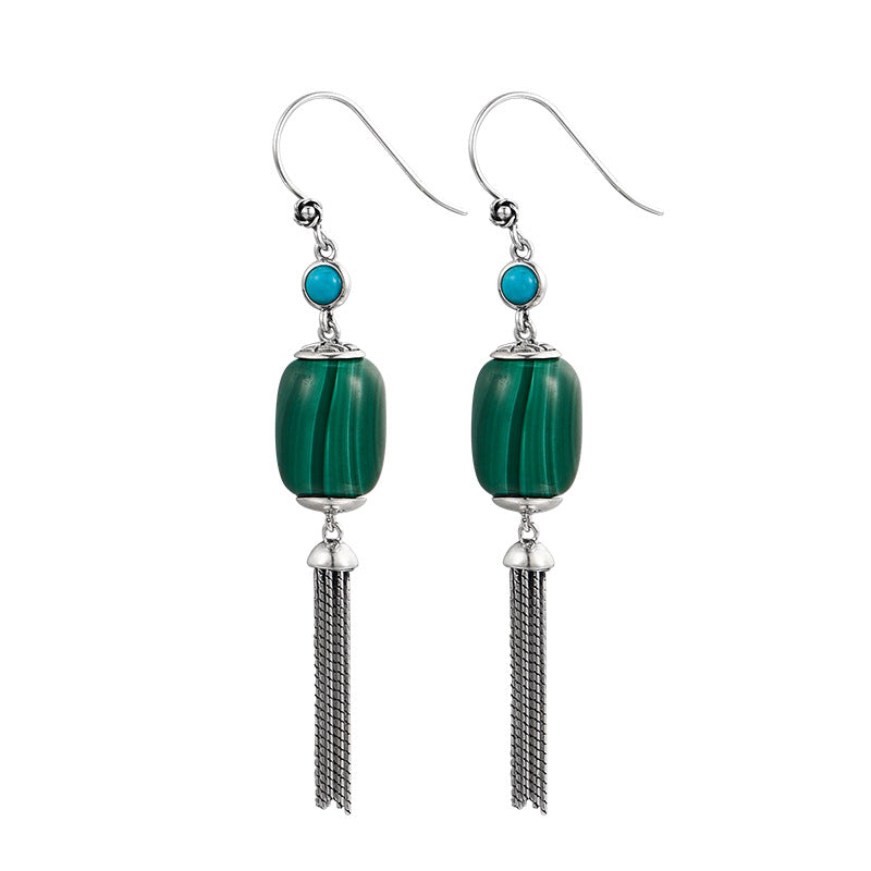 S925 Silver Malachite Tassel Retro Ethnic Earrings