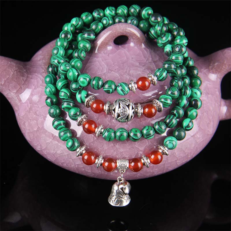 Tibetan 108 Beads Malachite Red Agate Bell Protection Bracelet Necklace Mala