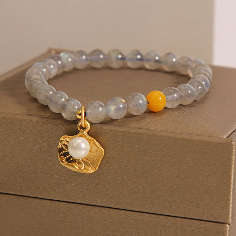 Lucky Shell Natural Moonstone Bracelet – a symbol of serendipity and natural elegance that encapsulates the essence of luck. This bracelet is more than just an accessory; it's a wearable work of art that combines the auspicious energies of Moonstone with the timeless charm of a lucky shell.