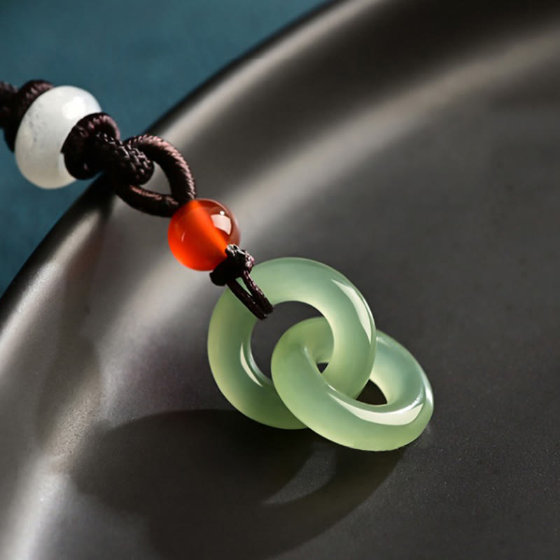 Hetian Cyan Jade White Jade Double Peace Buckle Success Pendant Necklace
