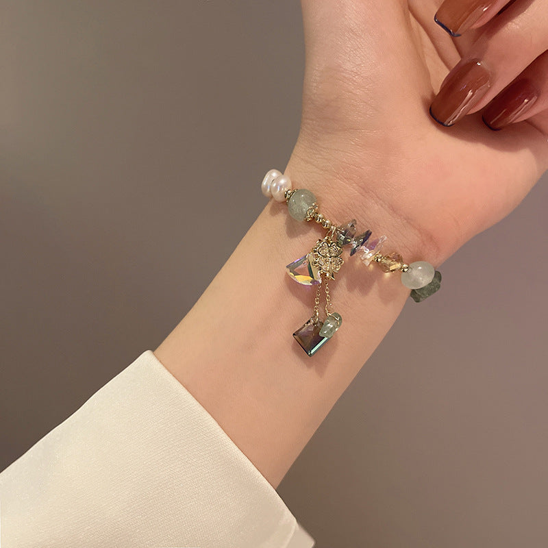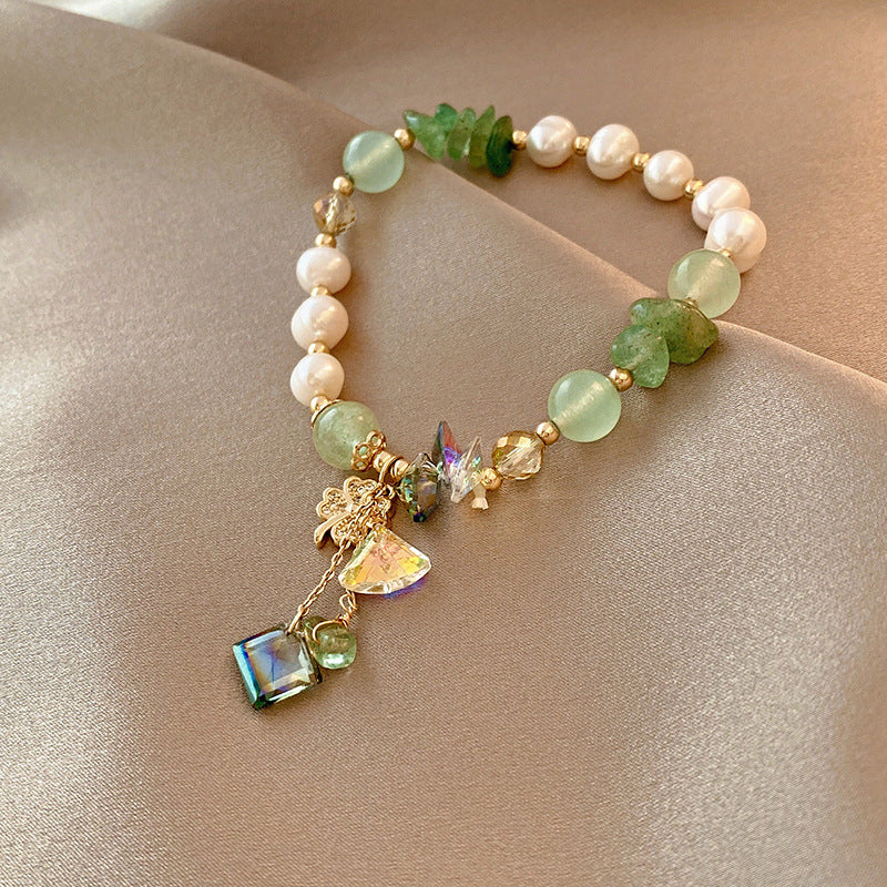 The Natural Green Crystal Pearl Bracelet is designed to be versatile and enduring, making it suitable for various occasions. Its adjustable clasp ensures a comfortable fit for any wrist.