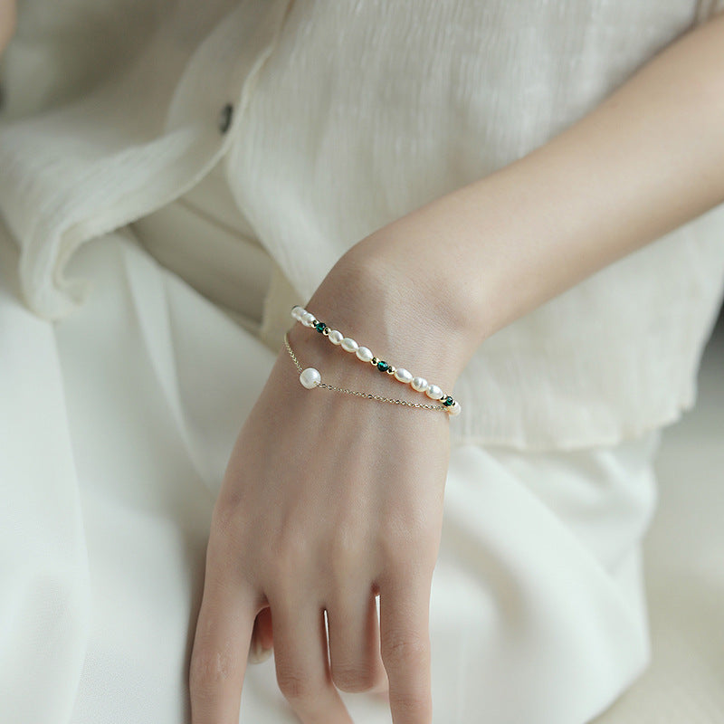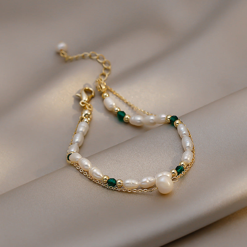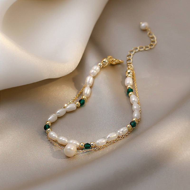 Two Layers of Natural Freshwater Pearl Bracelet – a harmonious blend of elegance and nature's beauty that captures the essence of sophistication. This bracelet is more than just an accessory; it's a wearable work of art that showcases the lustrous beauty of natural freshwater pearls.
