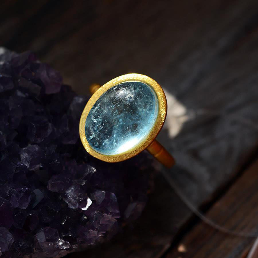 Aquamarine Crystal Stone Courage Lucky Wealth Lucky Adjustable Ring