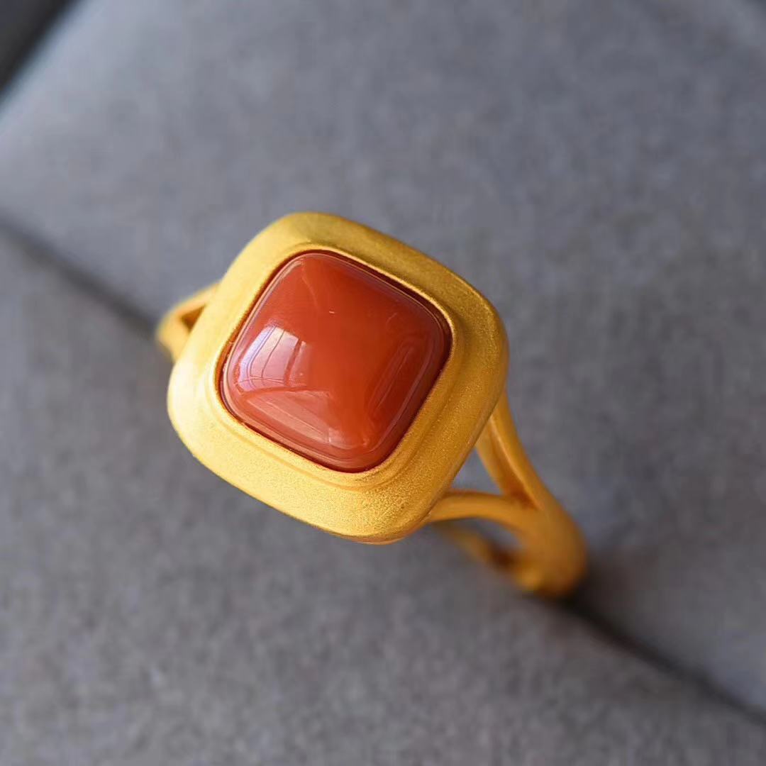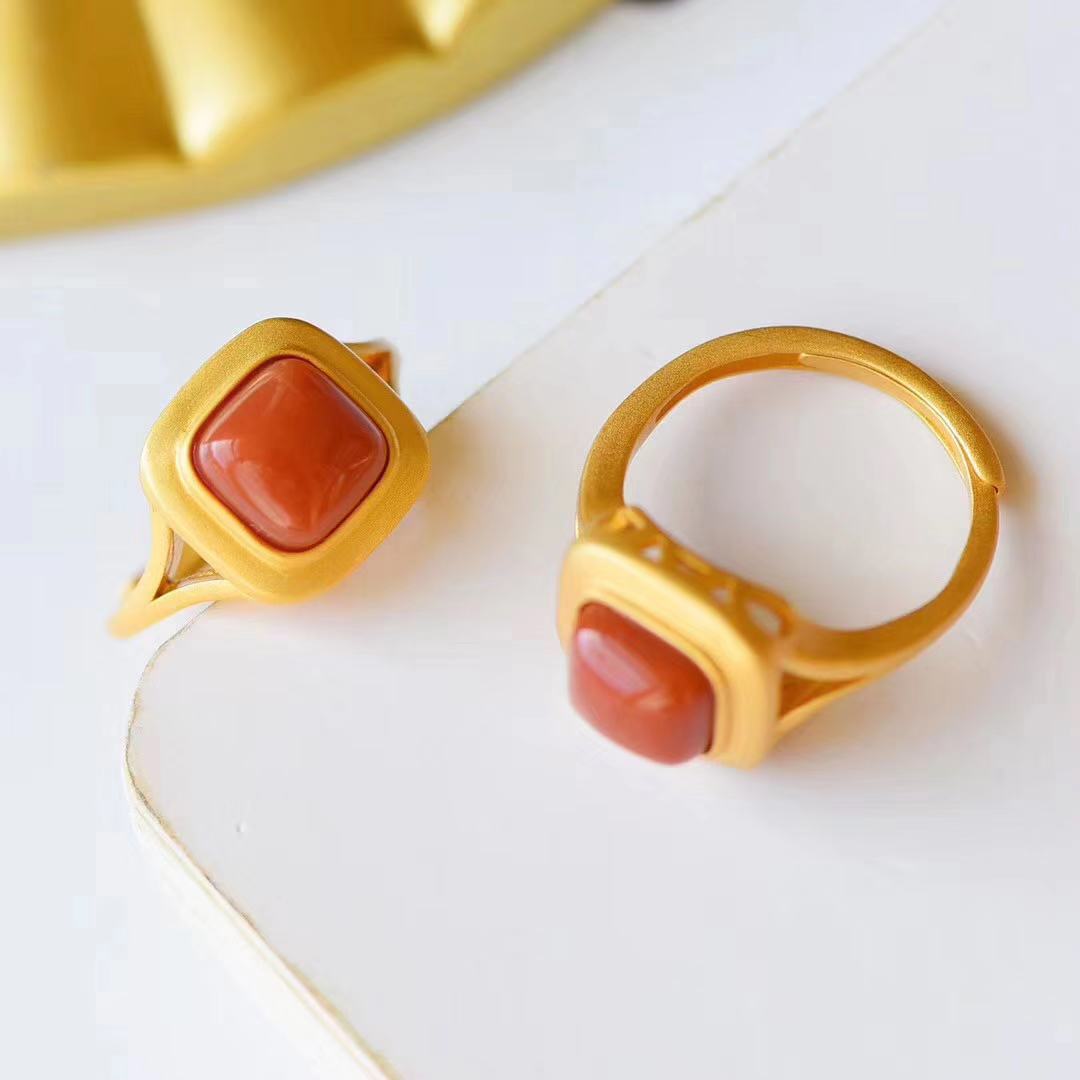 Red Agate Chinese Style Adjustable Retro Ring