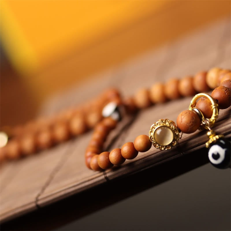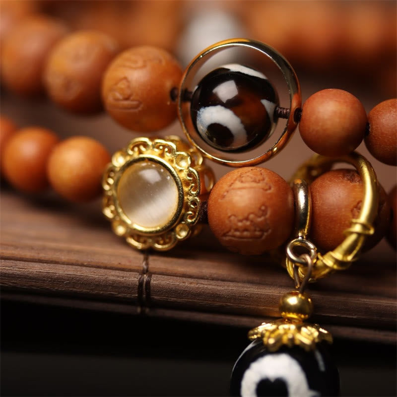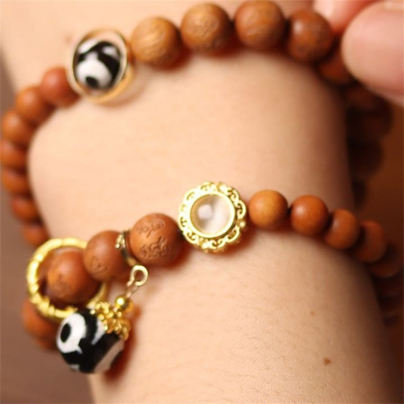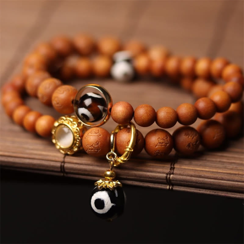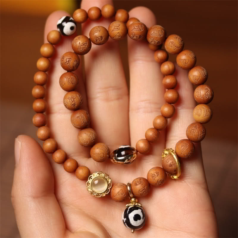 Tibetan Sandalwood Om Mani Padme Hum Dzi Bead Double Wrap Bracelet