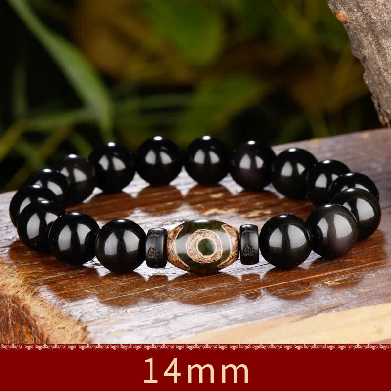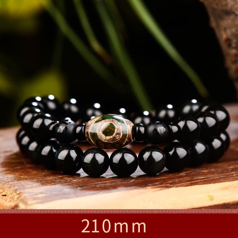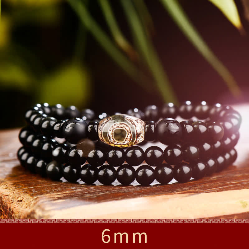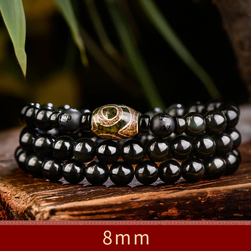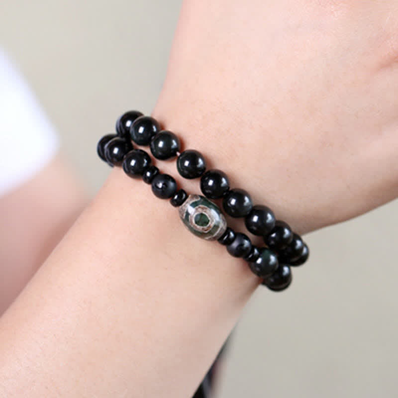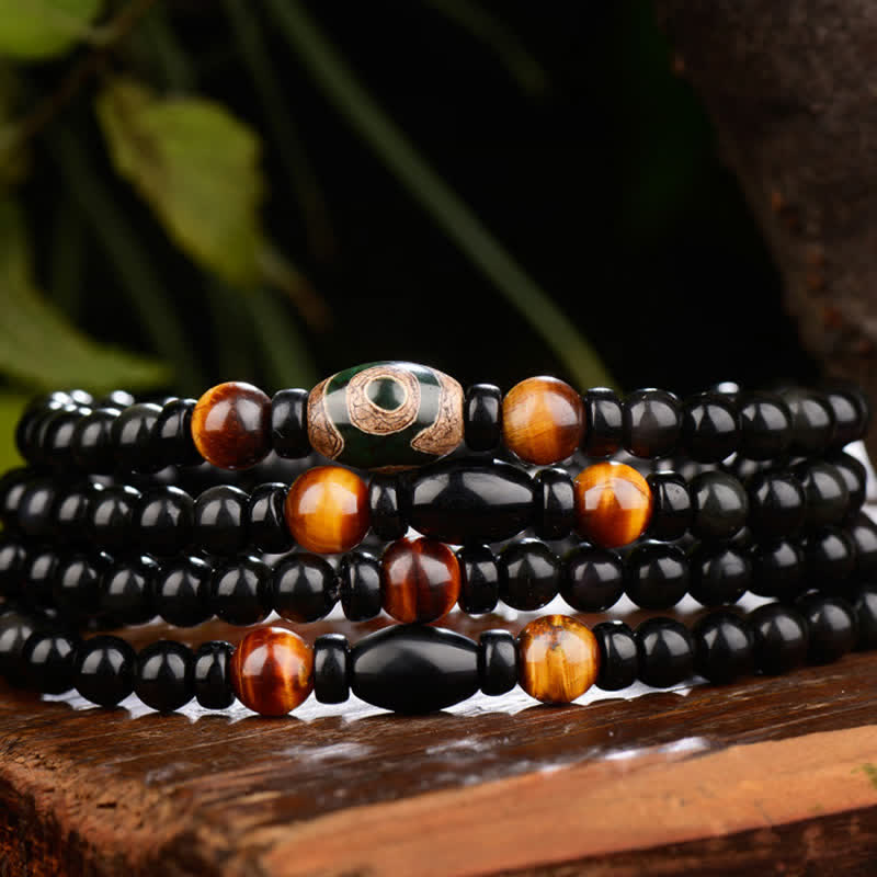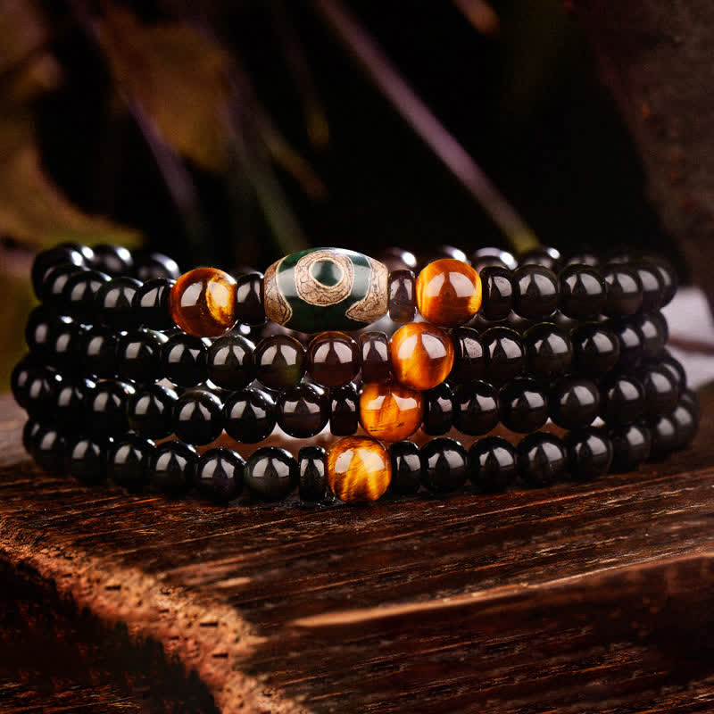 Black Obsidian Dzi Bead Tiger Eye Agate Healing 108 Beads Mala Bracelet
