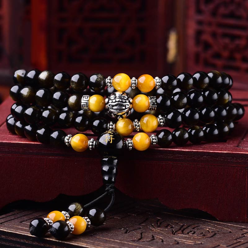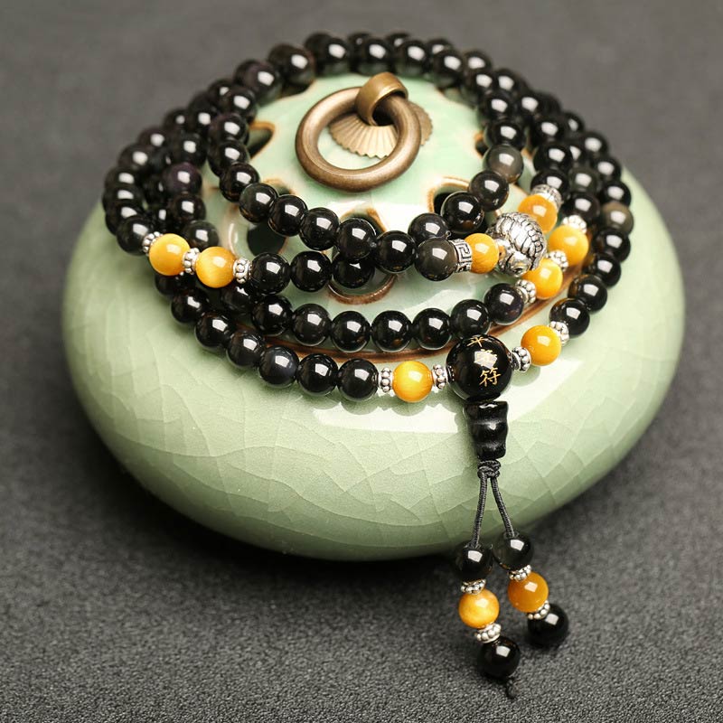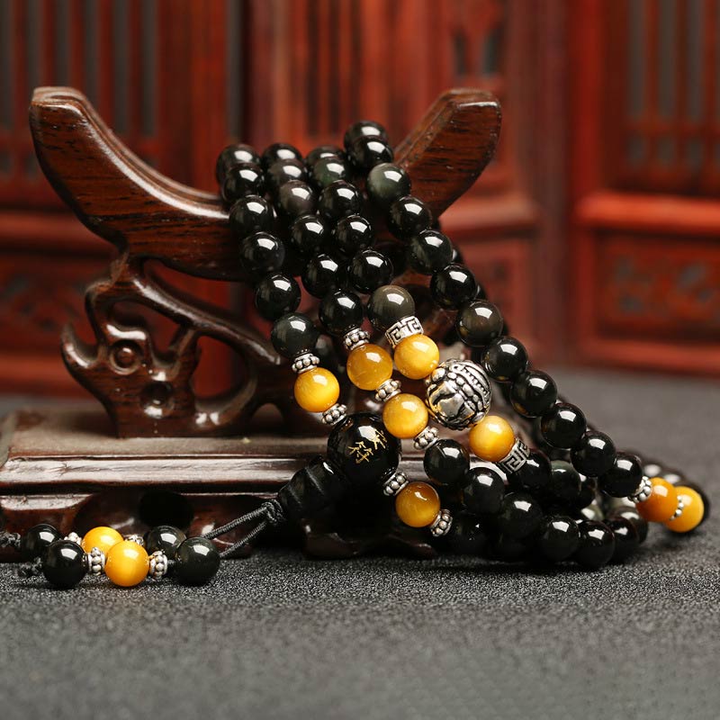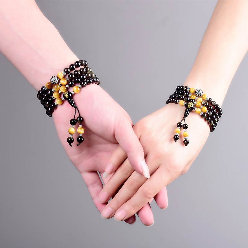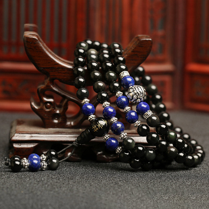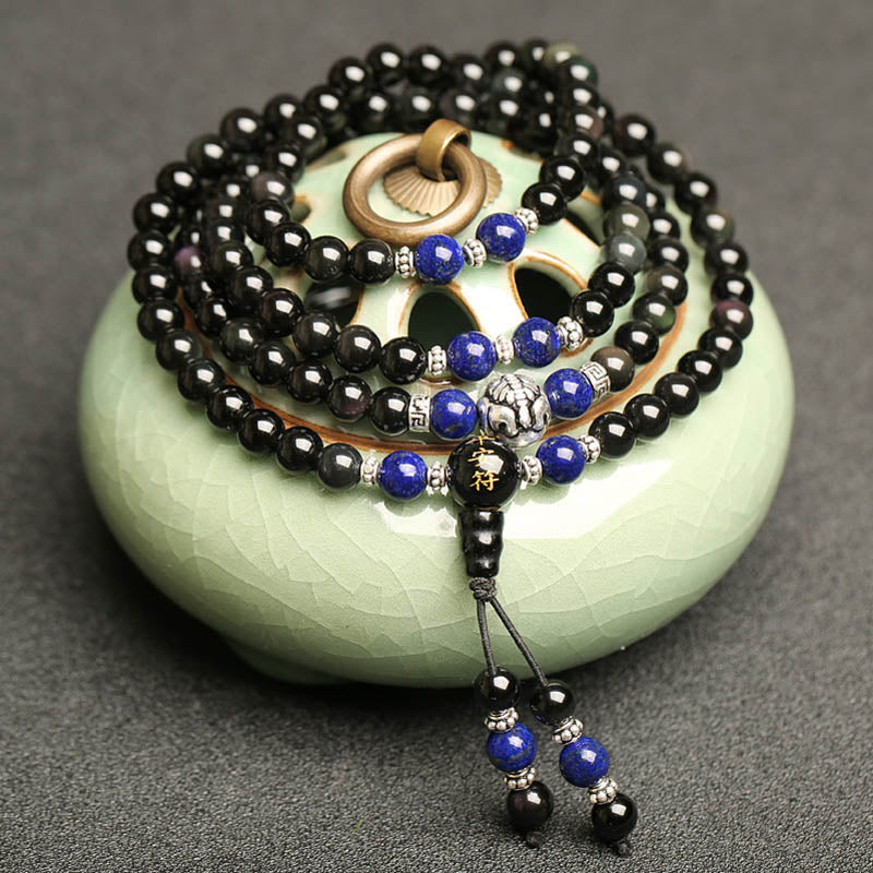 Black Obsidian Tiger Eye Lazurite 108 Beads Mala Necklace Bracelet