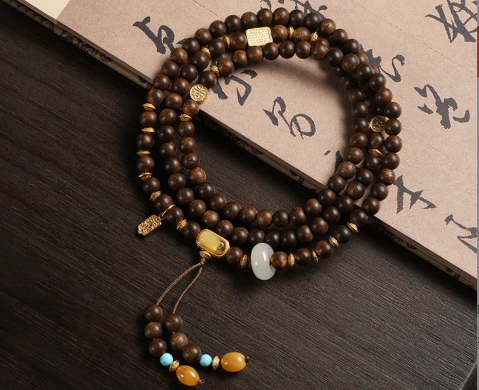 Elevate your spiritual practice and daily wear with this extraordinary Kynam Agarwood Zen Retro Bracelet Necklace - where ancient wisdom meets timeless elegance.