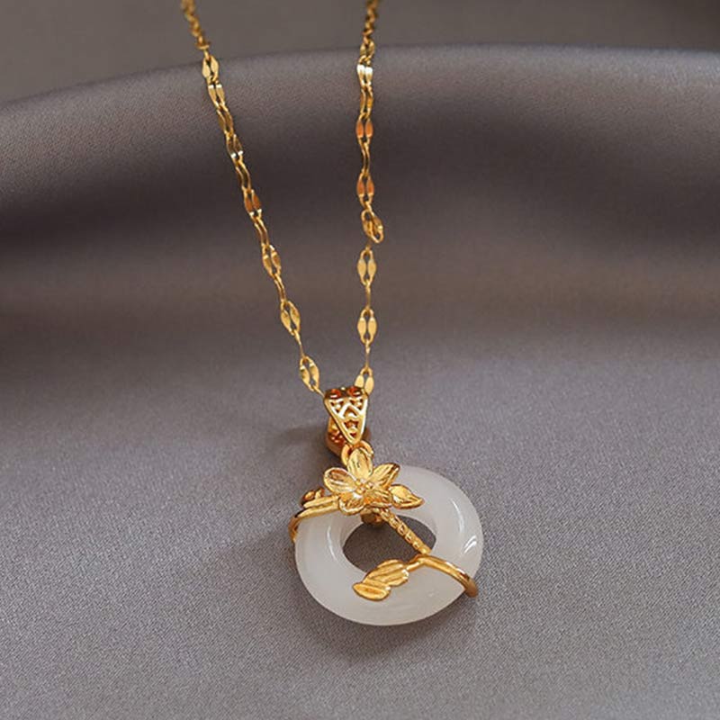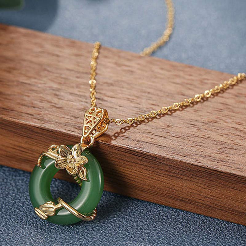 Lotus Pattern Jade Luck Necklace Chain Pendant